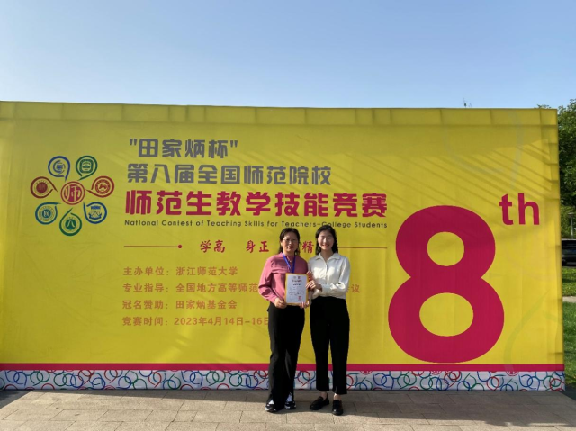 2023年4月14-16日,“田家炳杯”第八届全国师范院校师范生教学技能竞赛决赛在浙江金华顺利举行,来自全国32所高校的32名入围决赛的师范类学生齐聚金华,展开了一场精彩的师范生从业技能大比拼。经过激烈角逐,由色情短视频 李梅娟老师指导的2019级学生李天宇获得二等奖。