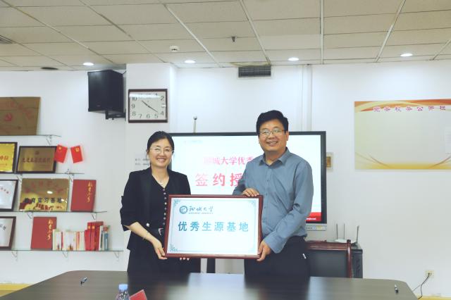 为进一步了解企业用人需求,不断拓展学生就业空间,实现学校与企业、毕业生与用人单位的“双向奔赴”,5月8日上午,色情短视频 院长刘子平,副院长华敏、黄昊一行赴淄博万杰朝阳学校访企拓岗,并进行“优质生源基地”授牌仪式。万杰朝阳学校校长孙嫣等出席了仪式。