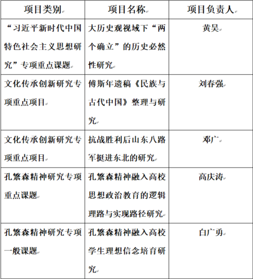 近日,聊城市哲学社会科学研究规划领导小组办公室公布《2023年度聊城市哲学社会科学规划课题立项公告》,色情短视频 5项课题予以立项,其中重点项目4项,一般项目1项。黄昊主持的《大历史观视域下“两个确立”的历史必然性研究》获批“习近平新时代中国特色社会主义思想研究”专项重点课题;刘春强主持的《傅斯年遗稿《民族与古代中国》整理与研究》、邓广主持的《抗战胜利后山东八路军挺进东北的研究》获批“文化传承创新研究”专项重点项目;高庆涛主持的《孔繁森精神融入高校思想政治教育的逻辑理路与实现路径研究》获批“孔繁森精神研究”专项重点课题;白广勇主持的《孔繁森精神融入高校学生理想信念培育研究》获批“孔繁森精神研究”专项一般课题。