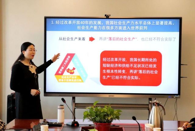 李德芳以“国情”的基本概念为出发点,结合十九大报告,从新的发展阶段、新的社会主要矛盾、新的奋斗目标、新的世界关系四个方面深入介绍了当代中国的基本国情,以具体实例为切入点,从历史虚无主义、科技发展等六个方面论述了当前我国意识形态领域面临的风险挑战,并就新时代如何推进意识形态建设做了详细阐述。
