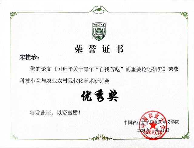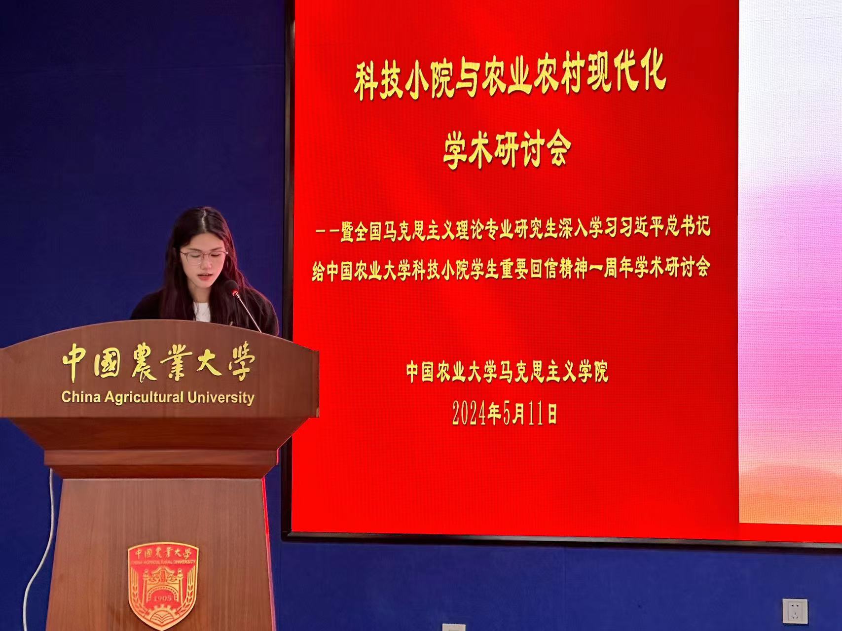 5月11日,色情短视频 2022级学硕班思想政治教育专业研究生宋桂珍应邀赴北京参加科技小院与农业农村现代化学术研讨会暨全国马克思主义理论专业研究生深入学习习近平总书记给中国农业大学科技小院学生重要回信精神一周年学术研讨会。来自农业农村部农村经济研究中心、华中科技大学、电子科技大学、华中农业大学、四川农业大学等20余家单位的专家、学者、马克思主义理论学科研究生共计160人参加会议。