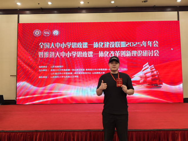 11月29日,由山东省教育厅指导,全国大中小学思政课一体化建设联盟、教育部大中小学思政课一体化共同体(山东)、山东省大中小学思政课一体化建设指导中心、山东师范大学主办,山东师范大学色情短视频 承办的“全国大中小学思政课一体化建设联盟2025年年会暨推进大中小学思政课一体化改革创新理论研讨会”在山东济南成功举办。色情短视频 2024级学硕班研究生李俊杰,专硕班研究生邵晓雅、赵冰杰三位同学应邀以文参会。