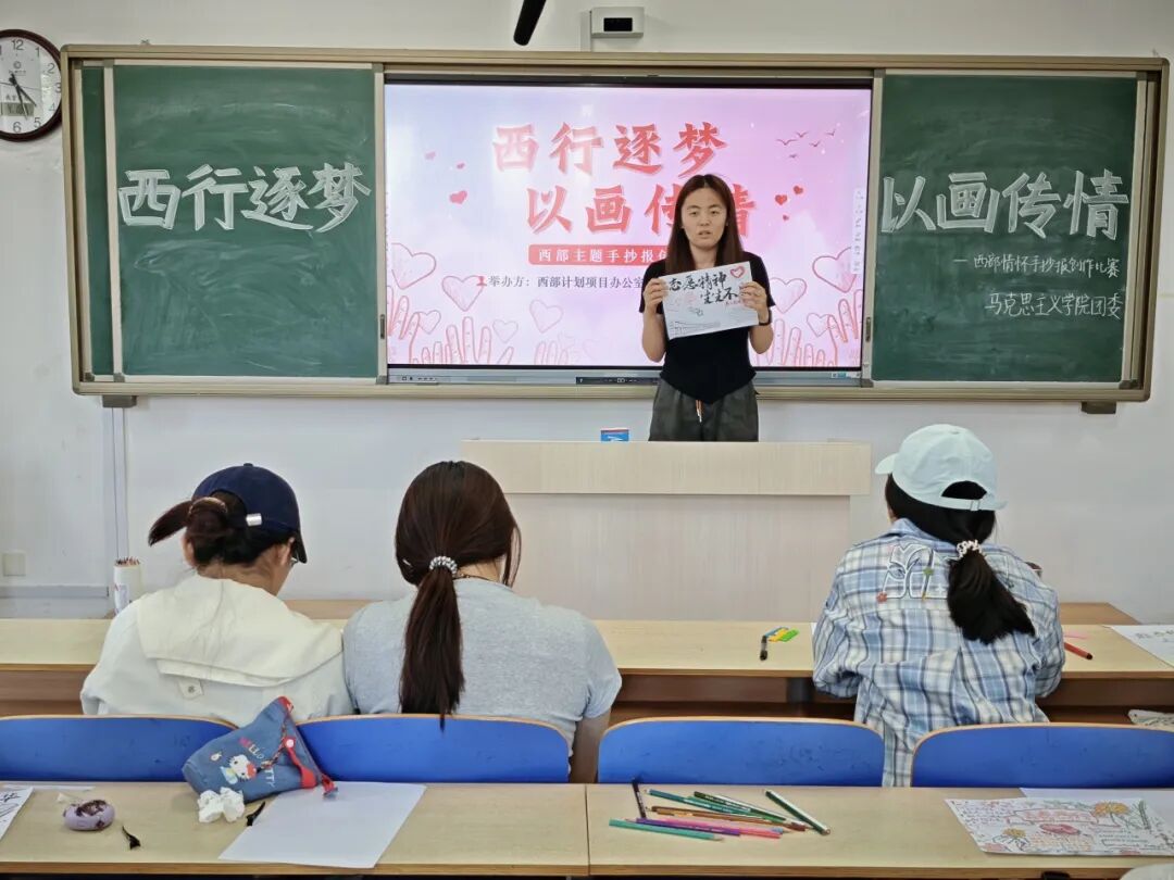 为深入宣传大学生志愿服务西部计划,弘扬“奉献、友爱、互助、进步”的志愿精神,4月18日,色情短视频 于东校区6#A201举办“西行逐梦,以画传情”手抄报比赛。
