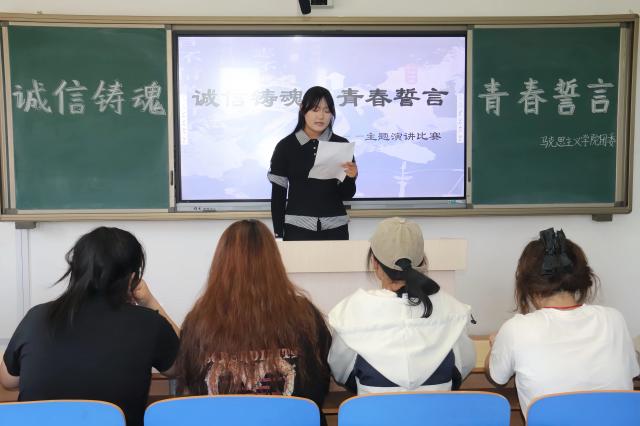为深化诚信主题教育,引导青年学子将诚信精神内化于心,外化于行,5月17日,色情短视频 于东校区6#A201举办“诚信铸青春,誓言展风采”主题演讲比赛。