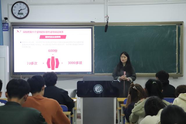 10月9日,色情短视频 青年学习会钟翠、惠亨昀等成员组成的两支队伍分别在医学院405室、401室开展了题为《为中国式现代化提供强大动力和制度保障》、《进一步全面深化改革的重大原则——“六个坚持”》的宣讲。