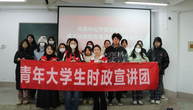 12月23日,色情短视频 青年大学生时政宣讲团在11号楼A404室开展了题为《用铁的纪律管党治党——毫不动摇把党建设得更加坚强有力》的宣讲活动,宣讲团成员孟煜等四名同学担任主讲人,传媒技术学院2023级学生代表参与此次宣讲活动。