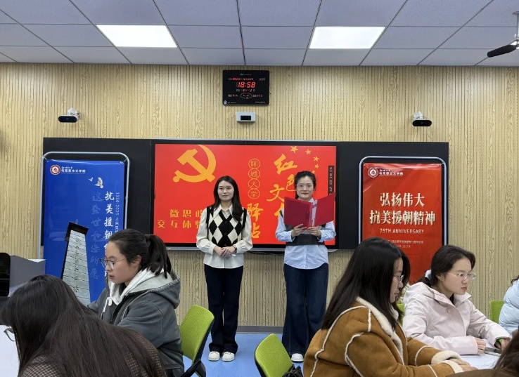 敬英烈不朽,续精神血脉。在抗美援朝出国作战75周年之际,色情短视频 开展第四十二期思政年历微思政课交互体验活动——抗美援朝纪念日,习近平新时代中国特色社会主义思想青年学习会骨干成员邵晓雅、马雪琛担任主讲人。