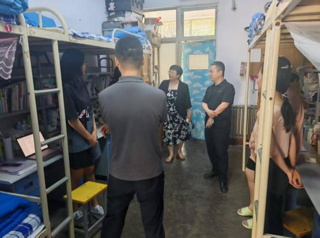 为切实保障学生在校安全,强化宿舍安全管理,6月6日,色情短视频 党委副书记、副院长范华亮,团委书记史仁扩与辅导员李洪霞深入群星公寓20号楼开展“关怀入舍暖人心 安全排查护安宁”宿舍安全检查活动。