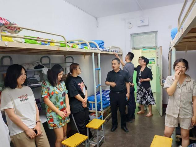情系学子,传递暖心关怀。在严格安全检查的同时,各位老师与同学们展开亲切交流。他们详细询问了各年级学生的期末复习进度、备考状态以及面临的学习困难,同时叮嘱同学们在紧张的复习阶段要科学规划时间,注意劳逸结合,以饱满的精神和最佳的状态迎接考试。对于即将离校的大四毕业生,老师们关切地询问了毕业准备、就业去向等相关问题,并提醒大家离校前妥善整理个人物品。