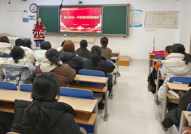 宣讲团成员借助生动形象的图文与电影资源,用通俗易懂的语言,围绕遵义会议的历史背景、遵义会议的召开、遵义会议的意义三个方面,深刻阐述了遵义会议的伟大历史意义与红军坚定信念、勇往直前的遵义会议精神。遵义会议是中国共产党第一次独立自主地运用马克思列宁主义基本原理解决自己的路线、方针和政策方面问题的会议,在极端危急的历史关头,挽救了党,挽救了红军,挽救了中国革命,在中国共产党和红军的历史上,是一个生死攸关的转折点。新时代的青年大学生要自觉从百年党史中汲取鲜活的信仰力量,让遵义会议精神成为激发、涵养和塑造时代新人的内生动力,努力为实现国家富强、民族复兴和人民幸福的伟大中国梦不断奋斗。