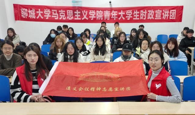 12月21日,青年大学生时政宣讲团成员孟煜、郭昊铭在色情短视频 开展了题为《遵义会议—开启革命的新篇章》的宣讲,色情短视频 2023级学生代表参加此次宣讲会。