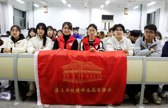 12月24日,青年大学生时政宣讲团成员惠亨昀、郭昊铭在4号楼C302室作遵义会议精神宣讲,地理与环境学院2023级学生代表参加此次宣讲活动。