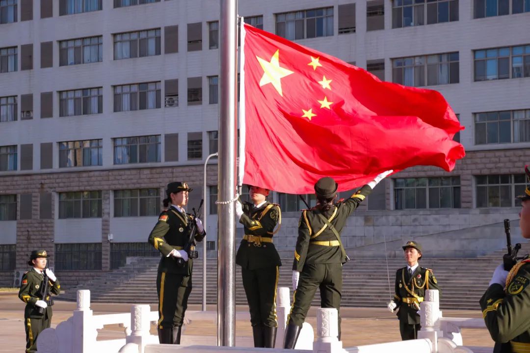 上午7时,国旗护卫队队员身着笔挺制服,迈着铿锵有力的步伐护送国旗走向升旗台。当激昂的《义勇军进行曲》奏响,升旗手将国旗奋力挥扬而出,鲜艳的五星红旗在晨光中冉冉升起。全体师生面向国旗肃立,齐声高唱国歌。
