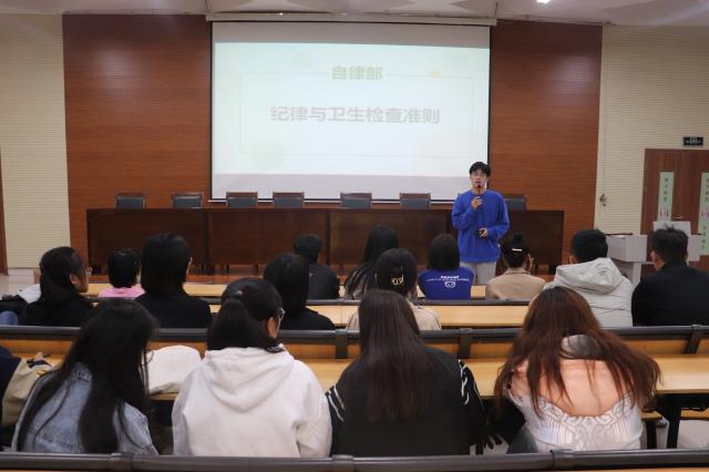 规矩与文明并行,本次活动就如何遵守课堂纪律,如何正确做好班级卫生,如何爱护优美的校园环境展开。无规矩不成方圆,主持人向同学们宣讲纪律条例,让学生们规范自我,更好地了解早操,早读,课堂和晚自习的规则,请假销假流程及注意事项。卫生方面,主持人强调打扫教室和直饮水机卫生的流程和注意事项,演示卫生打扫过程中多媒体的开关和使用,为日后的为卫生工作做准备。同时主持人列举了损坏公物、乱扔垃圾等不文明行为,引发同学们主动思考,提高保护公物与爱护环境的意识,让文明广泛于心,深入于行。21级相应负责人交流讨论宣讲内容,提出班级在纪律和卫生方面所遇到的问题和疑惑。