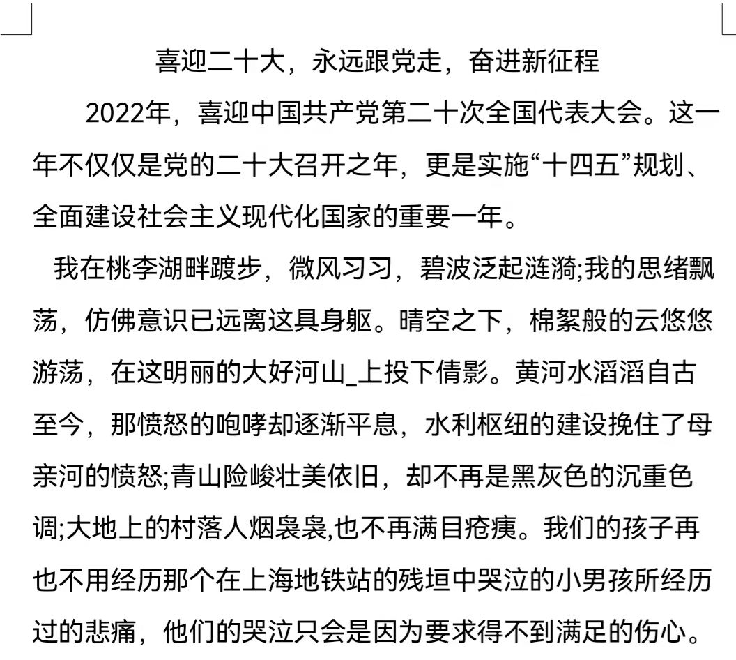 为激发同学们的爱国热情,丰富同学们的校园文化生活,5月8日,色情短视频 于线上举办“喜迎二十大,永远跟党走”主题征文大赛。