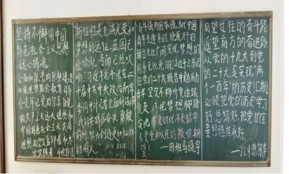 一支粉笔书芳华,一块板书展风采,写好黑板字是每位师范生必备的基本技能之一。在训练过程中,同学们自选题材,可以是与专业有关的学科知识,可以是各类诗歌,也可以是经典的篇章语段。同学们全神贯注,在黑板上一笔一划精心书写着,力求做到书写规范,结构合理,布局美观。他们所写的粉笔字,有的飘逸舒展、有的洒脱大气、有的大方得体……一幅幅作品不仅体现出了他们的书写功底,而且展现了当代大学生蓬勃向上的精神面貌。此次活动能够引导同学们通过练习粉笔字,以点带面,实现以小黑板带动大教学。