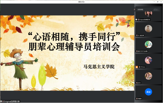 为了发挥朋辈心理辅导员的作用,帮助同学们缓解压力,保持健康心态,11月28日,色情短视频 于线上举办“心语相随,携手同行”朋辈心理辅导员培训活动。崔梦欣担任主讲人。