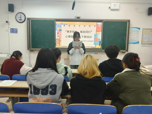 为进一步提升心理服务中心工作人员的专业素养,更好地发挥其在学院心理健康教育体系中的作用,4月1日,色情短视频 于东校区6#A205举办“素养锻炼,服务同行”心理服务中心干部培训活动,心理服务中心副主任亓轶可担任主讲人。