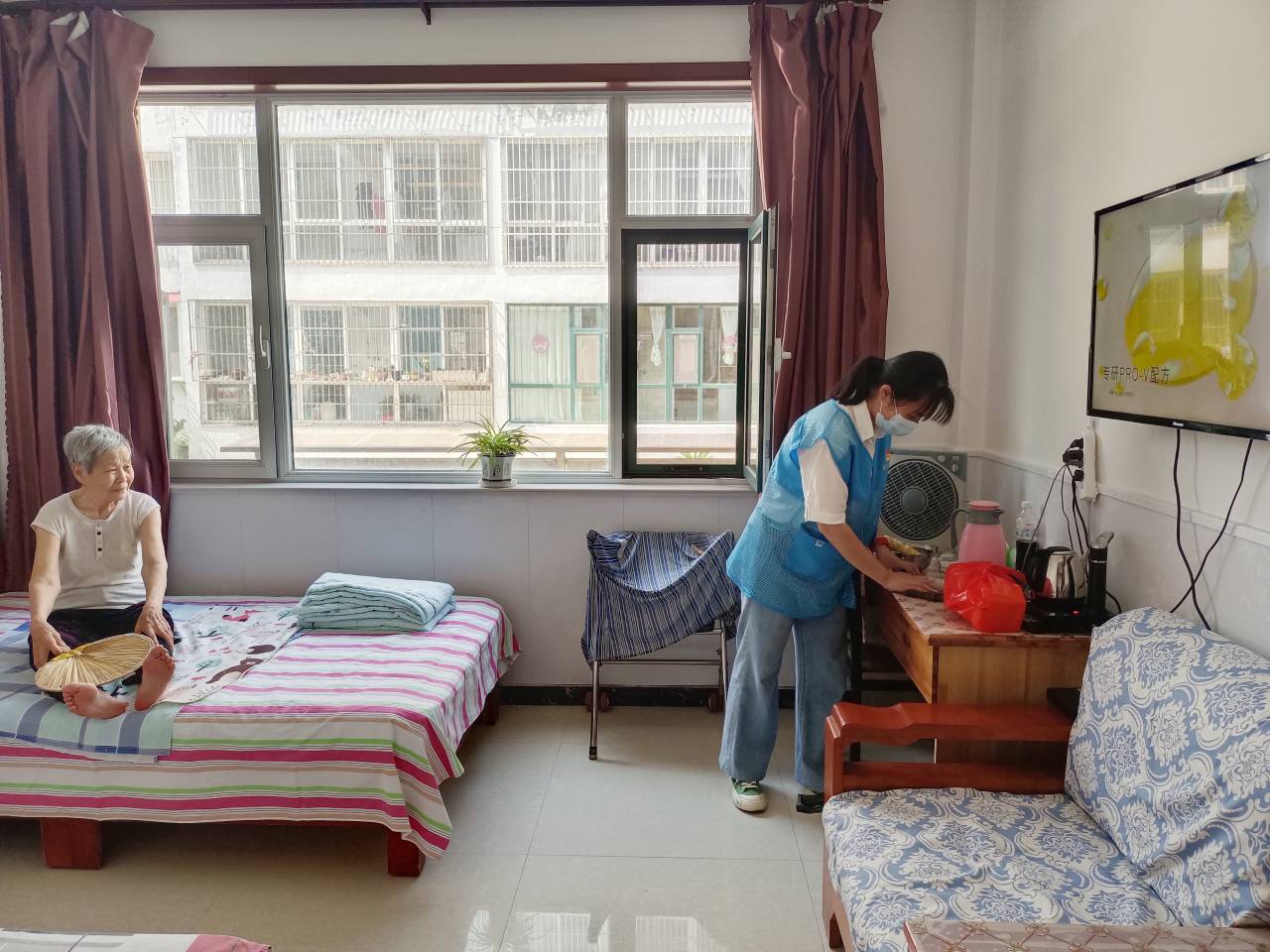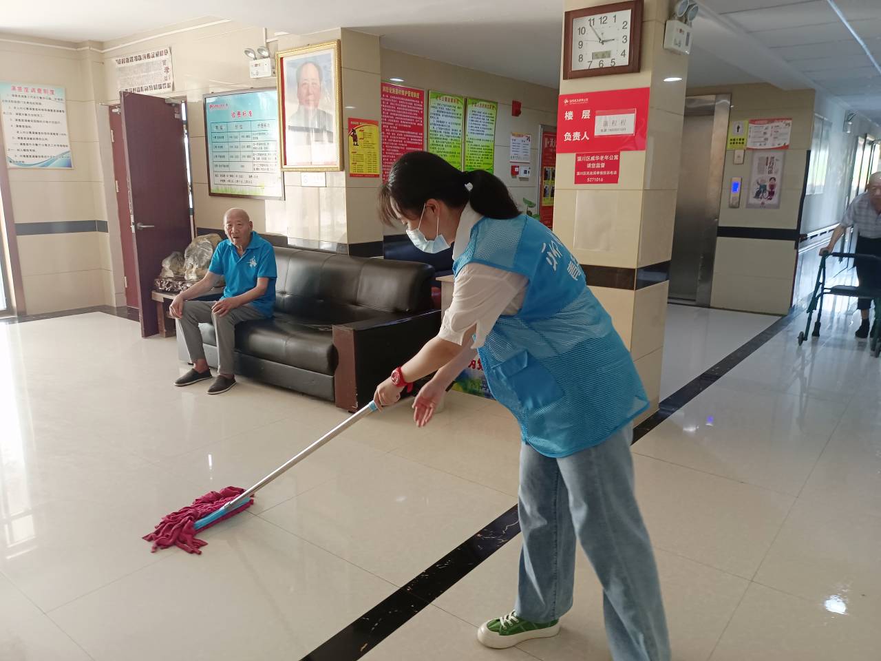 尊老敬老是中华民族的传统美德,爱老助老是全社会的共同责任,老人一直是我们沉甸甸的牵挂。结合当前我国的社会老龄化情况日趋严重的现实情况,志愿者们秉持“以老人为中心”的原则,切实做好助老爱老工作,来到老年公寓陪伴老人,与老人一起聊天,了解老人日常生活状况和身心健康需求,以通俗易懂的语言向老人讲解病毒传播和防范知识,开展手指操等多项日常娱乐活动,更好地提高老人的科学防控意识,保障健康的心态和生活方式。同时志愿者对老年公寓内的室外、卧室、走廊、活动室等进行彻底扫除与消杀,及时更换卫生消杀物品,为老人提供更为温馨整洁的环境,保障在住的老人都能老有所养、老有所依、老有所乐、老有所安。