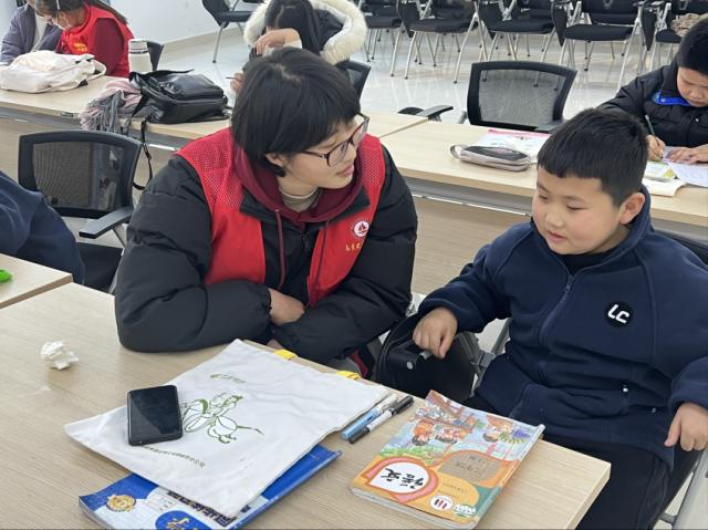 团支部成员在负责人的组织下,依次进入活动室,针对不同孩子的学科需求和课业情况,展开一对一教学辅导。在辅导过程中,团支部成员极具耐心,语气幽默,运用简单易懂的例子帮助理解,并及时纠正孩子们的错误,给予他们支持和鼓励,充分调动了孩子们的学习积极性,让他们在趣味性学习中深度掌握知识,提升学习能力。学习之余,成员们与孩子们进行游戏互动,让孩子们劳逸结合,提高学习效率,同时也迅速拉近了与孩子们的距离,真正实现了“在学中玩”和“在玩中学”的教学理念。