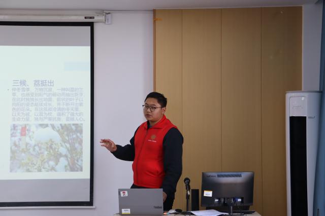 为宣传中华优秀传统文化,增强社区居民对中国传统节气的了解,12月9日,色情短视频 青马志愿者协会于聊城市东昌府区柳园街道越河街社区开展“时节天地,节气宣讲”中华优秀传统文化宣讲活动,青马志愿者协会志愿者孙凤斌担任主讲人。