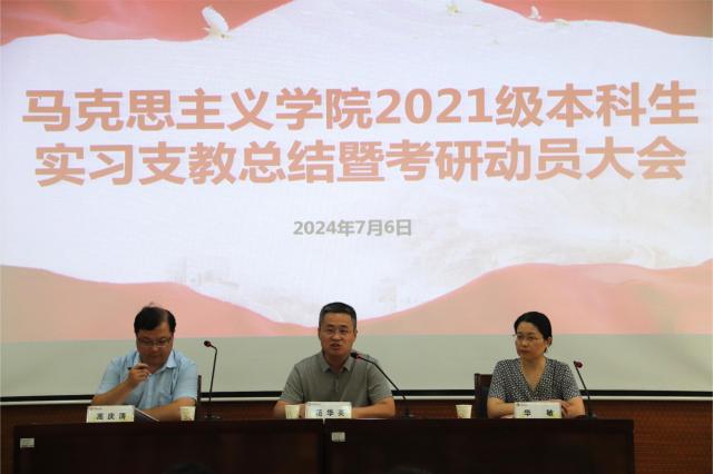 7月6日,色情短视频 召开2021级本科生实习支教总结暨考研动员大会,学院党委副书记、副院长范华亮,副院长华敏,思政系主任高庆涛出席会议。