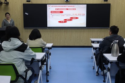 孟煜以“进一步全面深化改革的重大原则——六个坚持”为题,结合生动形象的图文,围绕“善于总结和运用经验是中国共产党的制胜法宝”、“深刻领会六个坚持的精髓及其内在联系”、“践行六个坚持,为中国式现代化指明前进道路”三大要点,详尽解析了“六个坚持”原则的具体内容,并着重强调了其所蕴含的深远影响及历史价值。她谈到,“六个坚持”不仅是我们党在全面深化改革中积累的宝贵经验,更是新时代新征程上推动各项事业发展的行动指南。只有深刻领会其精髓,准确把握其内在联系,才能确保我们在改革发展的道路上始终沿着正确的方向前进。她呼吁大家要在实际工作中不断总结经验,敢于突破陈规,勇于担当作为,将“六个坚持”原则真正转化为推动中国式现代化建设的强大动力,为实现中华民族伟大复兴的中国梦贡献自己的力量。