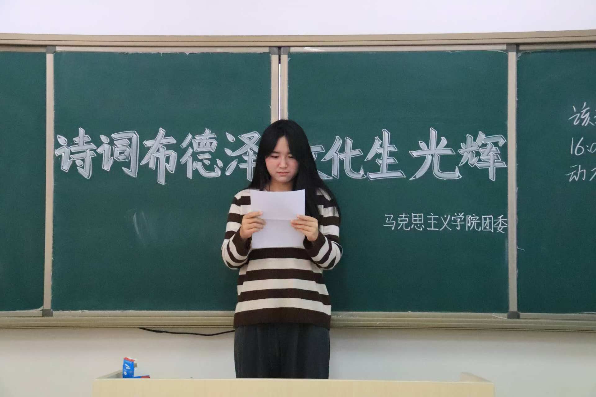 为进一步传承和弘扬中华优秀传统文化,激发同学们诵读诗词热情,提高同学们的人文素养和道德情操,11月5日,色情短视频 于东校区6#A202举办“诗词布德泽 文化生光辉”主题活动。
