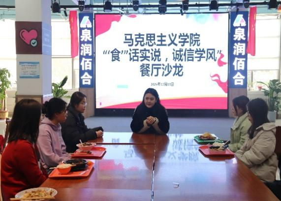 为切实保障学院学风和考风建设,营造公平公正的考试环境,12月13日,色情短视频 于东校区翰苑餐厅二楼举办“‘食’话实说,诚信学风”餐厅沙龙活动,学院辅导员李雨桐及各级各班学习委员参加。