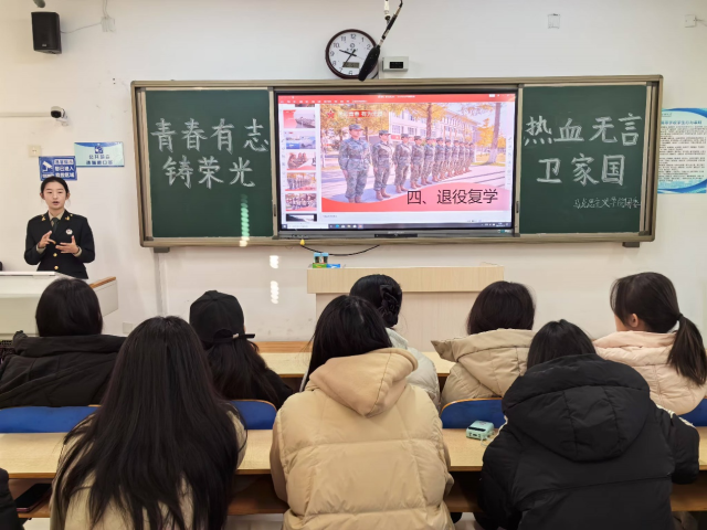 为深入学习贯彻习近平强军思想,积极响应国家征兵号召,激发同学们参军报国的热情,12月15日,色情短视频 于东校区6#A203举办“青春有志铸荣光 热血无言卫家国”征兵宣讲活动。本次活动特邀大学生退伍士兵周佳依担任分享嘉宾。