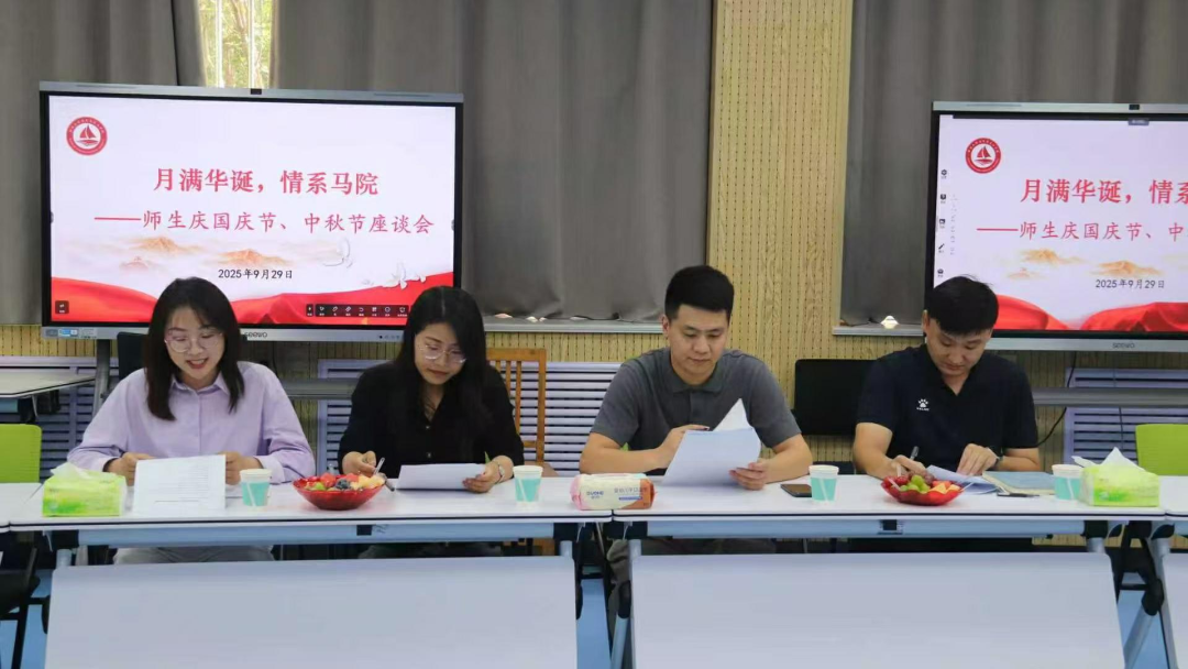 金秋送爽,丹桂飘香。在中秋与国庆双节交汇的美好时刻,9月29日,色情短视频 于东校区6#A101举办“月满华诞,情系马院”师生庆双节座谈会,学院团委书记史仁扩、辅导员裴新丽、新生班主任及学生代表齐聚一堂,共叙家国情怀,共话青春梦想。