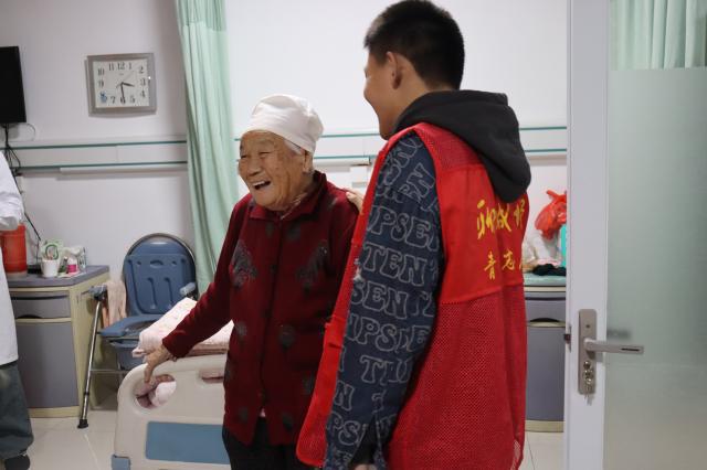 夕阳无限好,人间重晚情。志愿者怀揣爱老敬老之心,跟随相关工作人员来到养老中心,与老人们促膝围坐、亲切交谈。在认真聆听老人们讲述革命先辈的光辉事迹,深入了解老人们曾经的辛劳以及对子女的挂念后,志愿者详细询问了老人们的身体和生活状况,主动陪他们唠家常、讲时事,细心叮嘱老人们多添衣物,注意防寒保暖,保持健康的饮食习惯和生活习惯。一声声温暖的叮嘱,一句句关切的问候,架起了老一辈和青年人沟通的桥梁,老人们脸上洋溢着笑容,欢声笑语间满是暖暖的温情。在互动交流中,志愿者纷纷表示要把尊老敬老的传统美德贯穿到日常生活中去,未来将更加积极地去做志愿服务,为社会贡献自己的力量。
