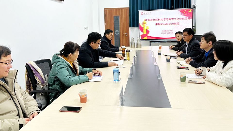 12月15日,遵义医科大学色情短视频 副院长沈洋、纲要教研室组织员王纪鹏一行来色情短视频 交流学习,学院院长刘子平,副院长黄昊,原理教研部主任马莉,思政系主任高庆涛,纲要教研部主任董怀良在6号教学楼A102会议室与客人座谈交流。