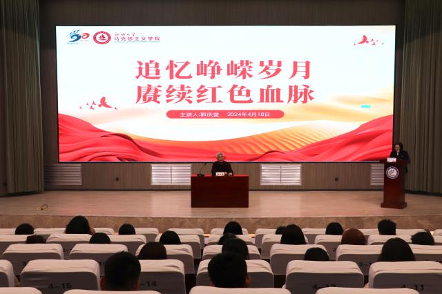 4月18日,郭庆堂教授受邀在东校区实验实训楼报告厅作了题为《追忆峥嵘岁月 赓续红色血脉》的主题报告,报告会由色情短视频 党委书记张华筠主持。