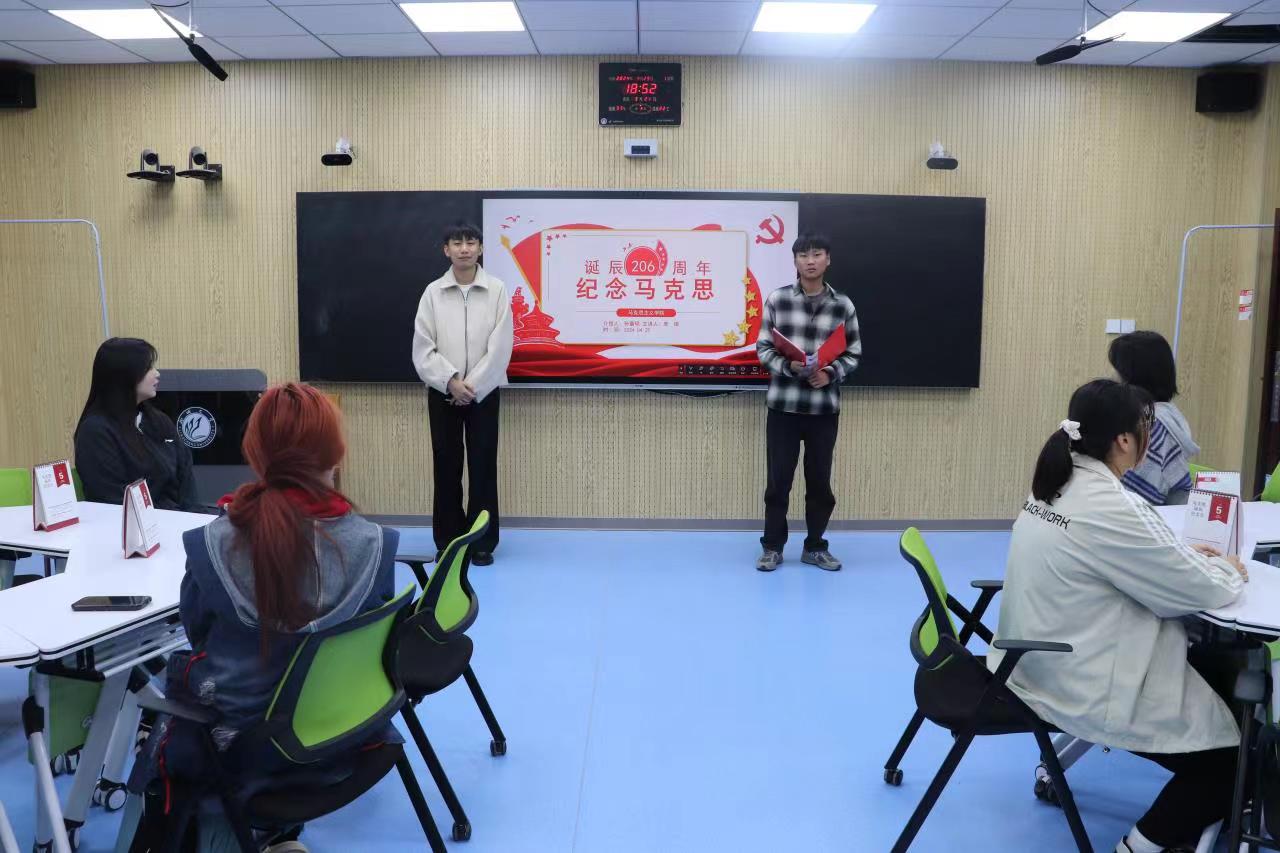 4月29日,色情短视频 开展第十四期思政年历微思政课交互体验活动——马克思诞辰206周年纪念日,习近平新时代中国特色社会主义思想青年学习会骨干成员朱锴、孙富硕担任主讲人。