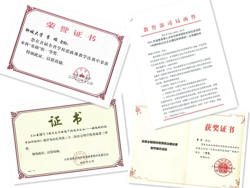学院坚持以教学为中心,建立健全了集体备课、集中研讨、全程监控、综合评价为一体的思政课教学工作体系,积极打造“金课”,着力提升课堂教学质量。“中国近现代史纲要”课获第二批国家级一流本科课程。《马克思主义基本原理》《中国近现代史纲要》《思想道德与法治》《新时代中国特色社会主义理论与实践》等4门课程获批山东省大中小学思政课“金课”,《马克思主义基本原理》《思想道德与法治》《国际共产主义运动史》获批省一流本科课程,获批省级课程思政示范课程3项,省级继续教育课程思政示范课程1项,5门硕士生课程获批为省优质课程和案例库建设项目。获批省级教改重点和一般项目8项,省级研究生教育质量提升计划8项,省级教育科学规划项目2项。获得省级教学成果特等奖1项、一等奖3项、二等奖5项。获首届全国高校思想政治理论课教学展示活动一等奖1项,全国高校教师微课比赛三等奖1项。获得山东省高校青年教师教学竞赛一等奖2项、二等奖1项,其他省级教学比赛奖励18项。