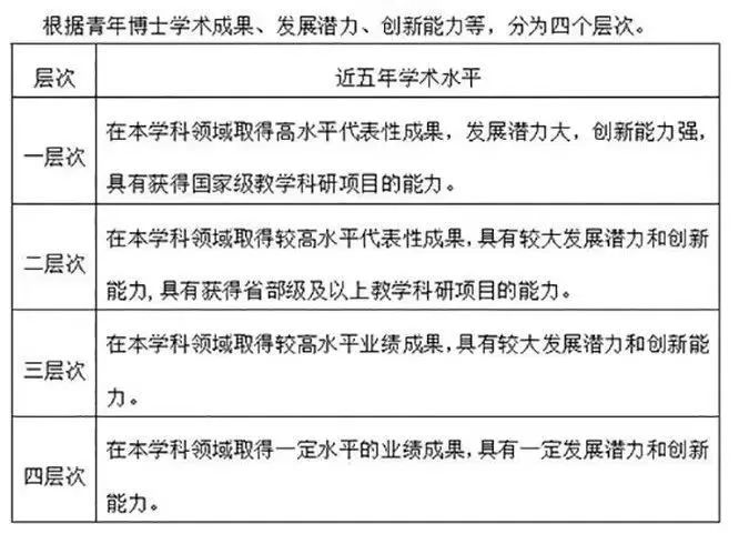 4.第四层次骨干人才:在本学科领域具有一定的学术影响力和学术声誉,在科学研究方面已取得较突出学术成果的骨干人才;或相当水平优秀人才。