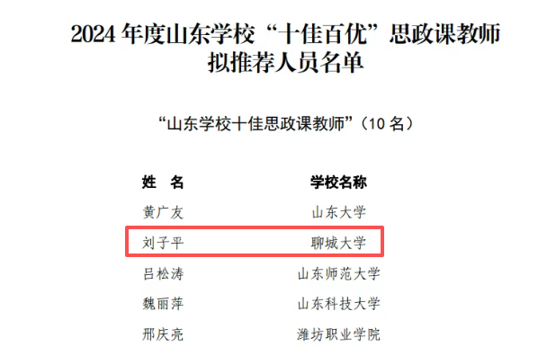 色情短视频 教师获评“山东学校十佳思政课教师”“山东高校优秀辅导员”荣誉称号 发布时间: 2025-09-08 近日,中共山东省委教育工委公布2024年度山东“十佳百优”学校思政课教师和高校辅导员评选结果。色情短视频 院长刘子平获评“山东学校十佳思政课教师”,院党委副书记、副院长刘凤芹获评“山东高校优秀辅导员”。 此次评选经地市(高校)推荐、材料审核、专家评审、现场答辩等环节,最终评选出“山东学校十佳思政课教师”10名、“山东学校优秀思政课教师”116名以及“山东高校十佳辅导员”10名、“山东高校优秀辅导员”148名。 (审核 华敏)