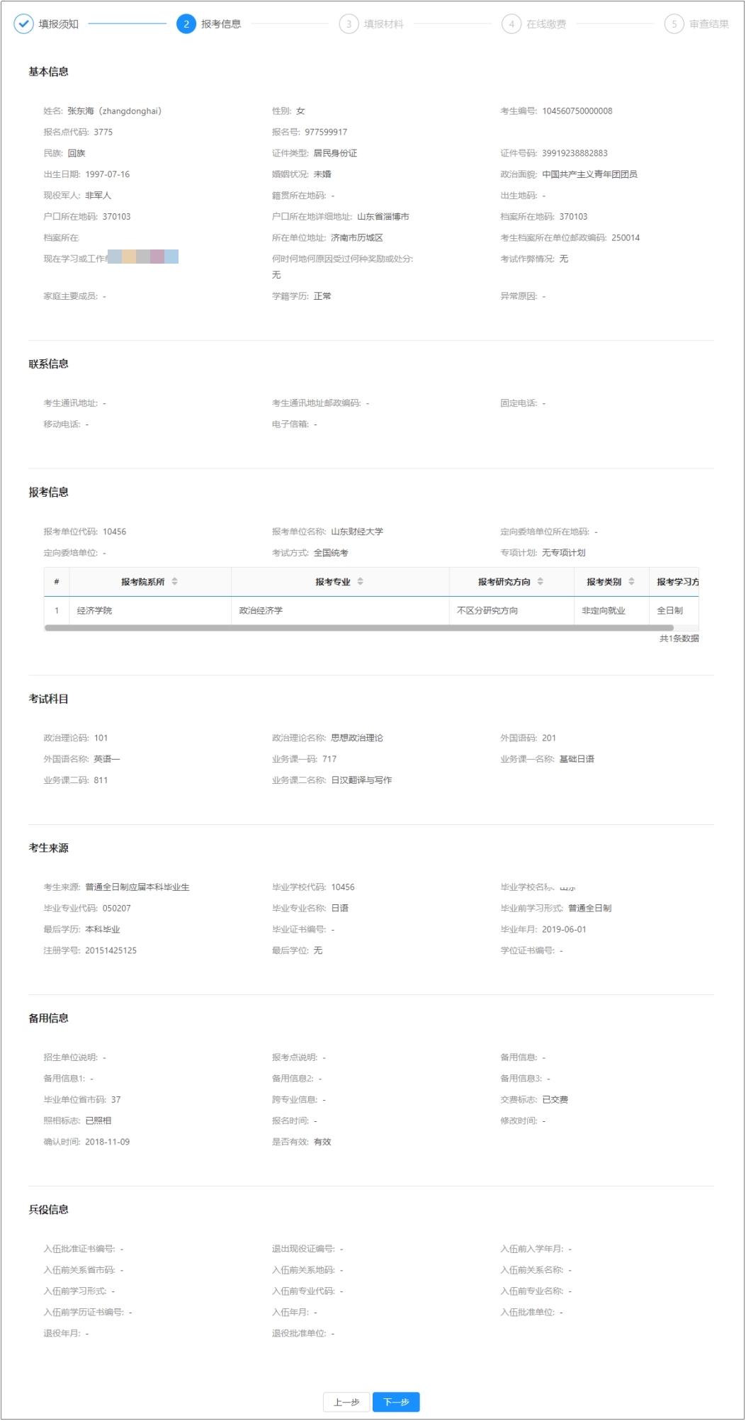 第二步:确认报考信息,查看信息后,点击【下一步】。