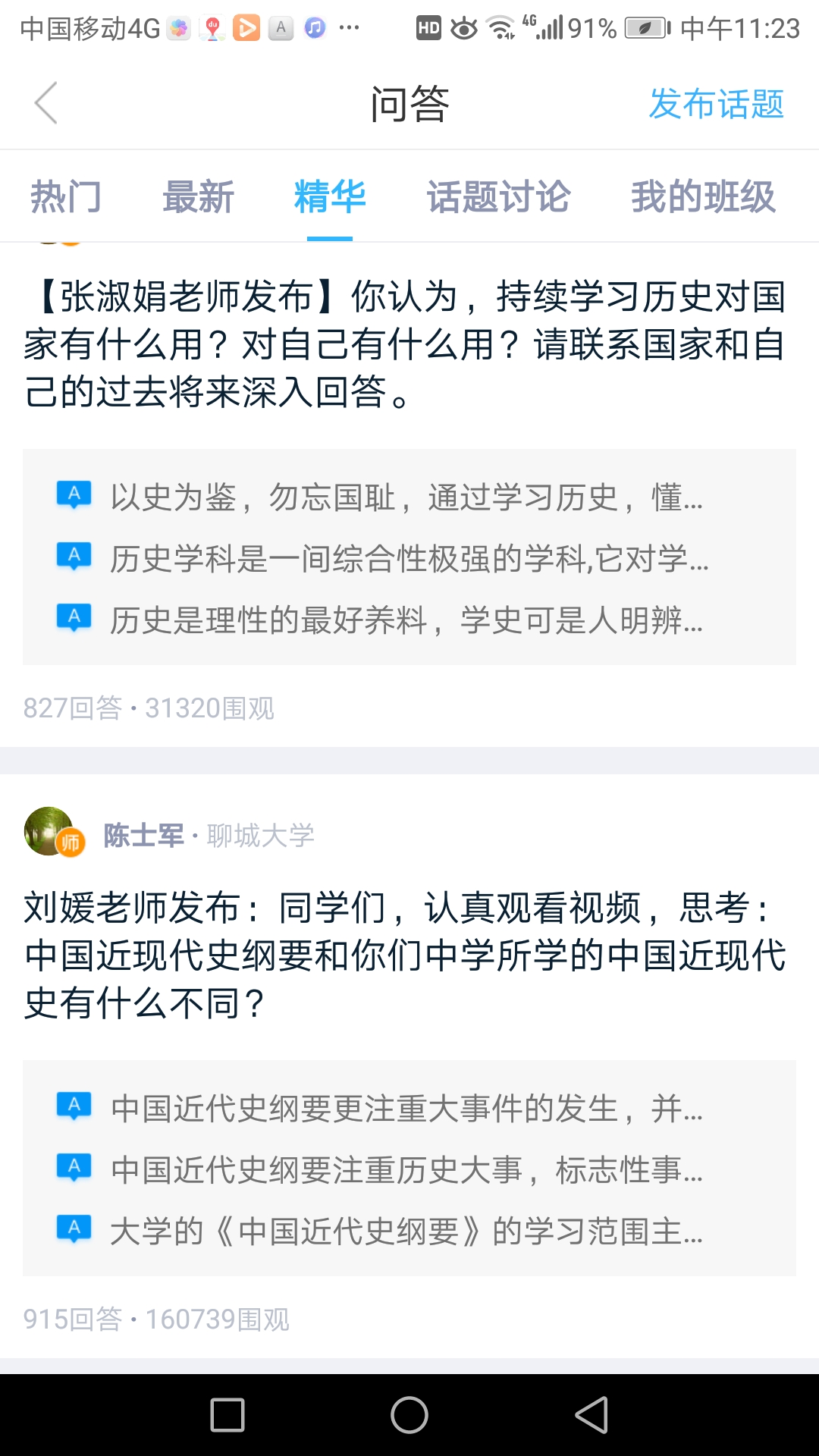 【张淑娟、刘媛等教师发布问题及学生交流数据】