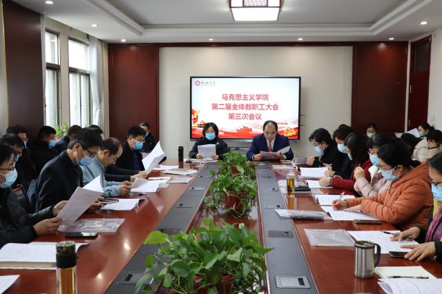 1月15日下午,色情短视频 第二届教职工暨工会会员大会第三次会议在学院会议室胜利召开。色情短视频 领导班子成员和全体教职工出席大会,大会由学院党总支书记张华筠主持。