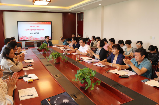 李士峰副院长传达了关延平书记、王昭风校长在新学期工作部署会上讲话的主要精神,总结了暑假期间学院开展的各项工作,对开学后的教学、科研工作进行了具体部署。