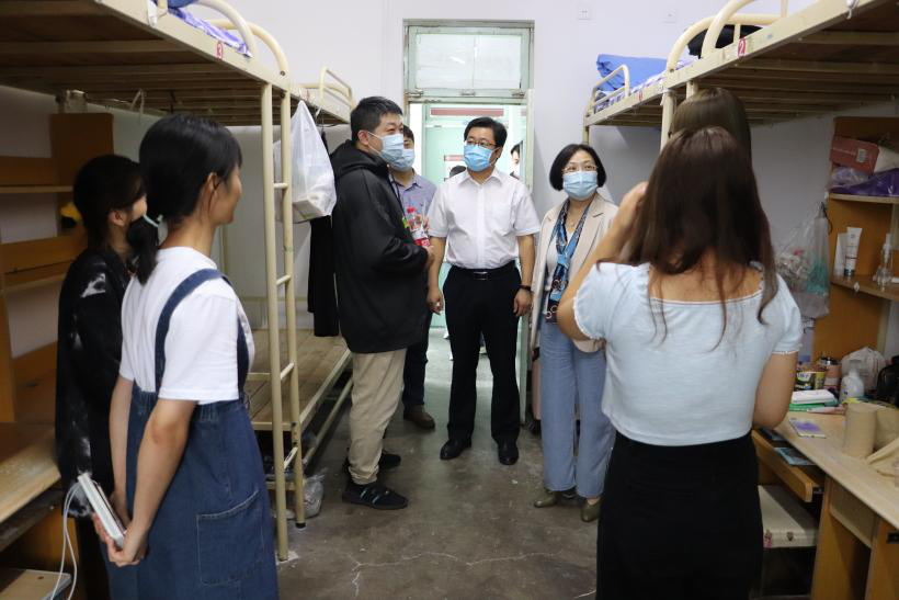 张华筠书记一行人先后走访了群星20号楼和群星12号楼,亲切地与新同学问候交流,询问新同学遇到的问题并耐心地给予了答复,张书记一方面告诉同学们在生活、学习中有不懂的地方可以和辅导员、班主任老师多沟通,多交流。另一方面,提醒同学们,要注意好休息,尽快调整作息时间,准备好迎接军训。对于大四的同学,张书记提出了新期望,希望他们注意锻炼身体,保证乐观心态,以崭新的面貌迎接新学期新挑战,争取每天都能有新的收获。此外,张书记强调要注重宿舍卫生和安全,务必要做到人走时断水断电,避免安全隐患的产生。张书记嘱咐同学们要坚决执行学校关于疫情防控的各项工作部署,积极配合学院志愿者的工作,希望同学们不串门走动、不集中聚集,注意个人生活及寝室环境卫生,积极传递防疫正能量。张书记还提醒新同学要尽快适应开学后的校园生活,珍惜现在的学习时光,做好大学期间的生涯规划。