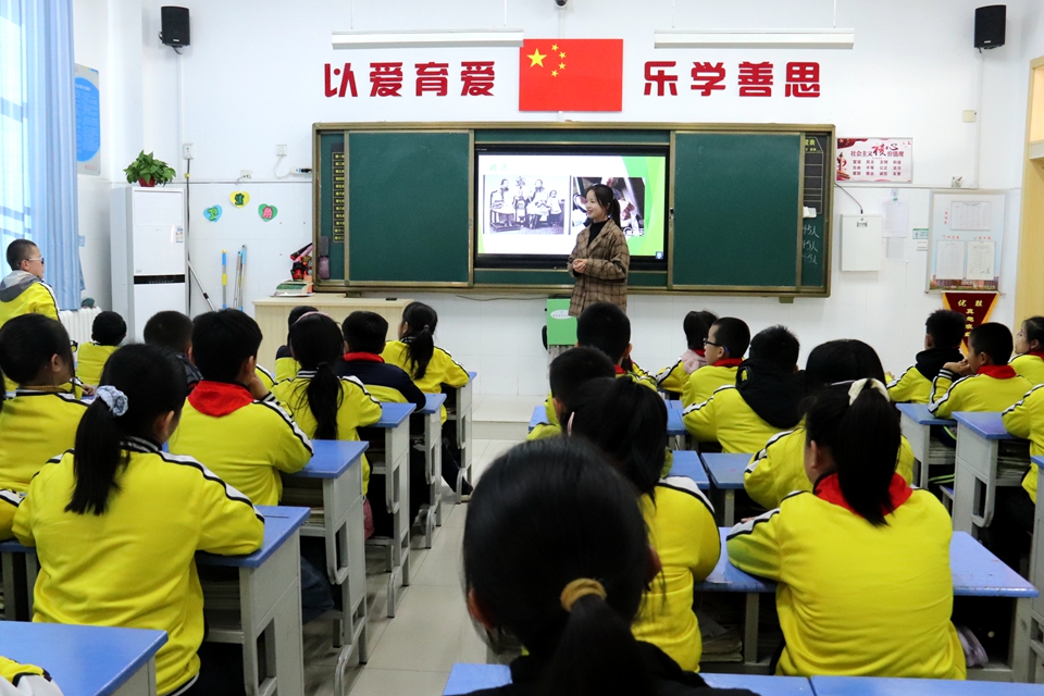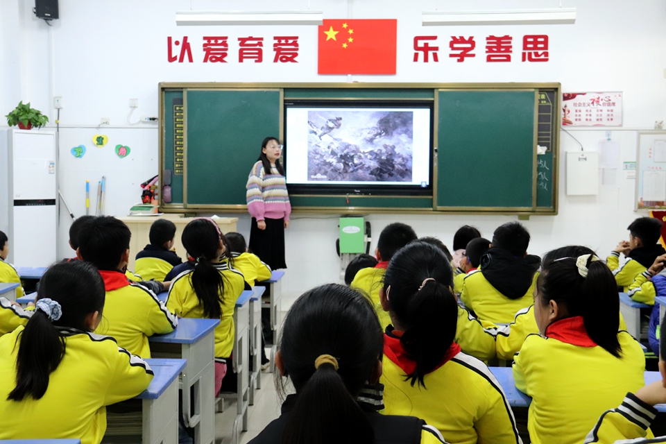 基于授课对象是小学四年级学生,于静在讲述中国人民志愿军特级战斗英雄—杨根思的故事时始终坚持以“问题意识”为导向,结合图片、视频等方式,深入浅出向同学们讲述杨根思的战斗经历及其“三个不相信”的战斗誓言,在讲到小高岭战斗中杨根思率部接连击退美军8次进攻,最后扛起炸药包与敌人同归于尽的故事时,许多同学眼泛泪花,于静趁势鼓励同学们学习杨根思的大无畏精神,积极勇敢面对学习、生活中遇到的各种困难。