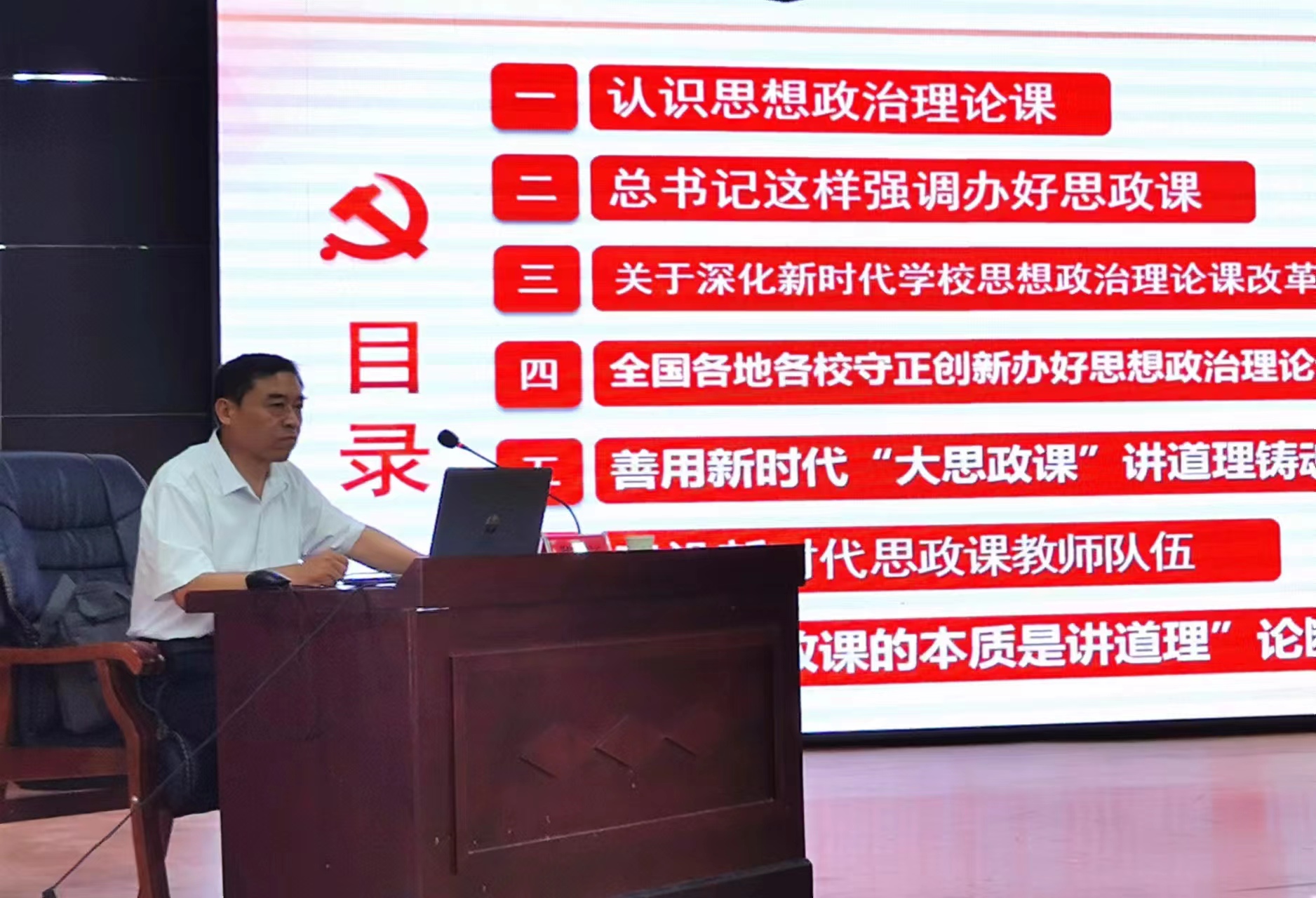 2022年7月23日,色情短视频 郑继江副教授应邀在聊城市开发区实验第二小学五楼会议室为2022年暑期聊城市高新区和开发区思想政治理论课教师培训班作了《新时代大中小学思政课一体化建设的理论与实践》的辅导报告。郑继江副教授从“认识思想政治理论课”、“总书记这样强调办好思政课”、“关于深化新时代学校思想政治理论课改革创新的若干意见”、“全国各地各校守正创新办好思想政治理论课”、“善用新时代‘大思政课’讲道理铸魂育人”、“建设新时代思政课教师队伍”、“对‘思政课的本质是讲道理’论断的理解”等七个方面进行了讲解,受到培训班广大学员的高度评价。