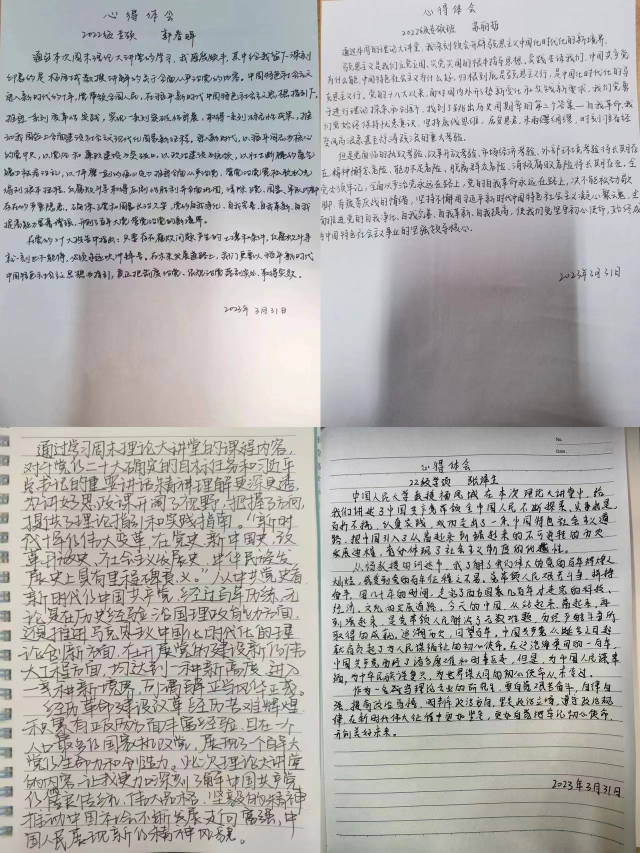 在观看过程中,同学们认真思考、专心记录笔记,根据三位老师的讲解纷纷发表了自己的意见。张泽生同学谈到,作为一名马理论专业的研究生,要自觉艰苦奋斗,自律自强,提高政治觉悟,明辨政治方向,坚定政治立场,遵守政治规律,在新时代伟大征程中更加坚定自觉地牢记初心使命,开创美好未来。赵宁同学表示,此次大讲堂让人更加深刻了解中国共产党的优良传统,伟大品格,坚毅的精神推动中国社会不断发展走向富强,中国人民展现新的精神风貌。大家大家一致认为要自觉用党的科学理论武装头脑,积极承担时代重任,掌握学习理论的方法,不忘初心和使命,用汗水和智慧书写人类华丽篇章。