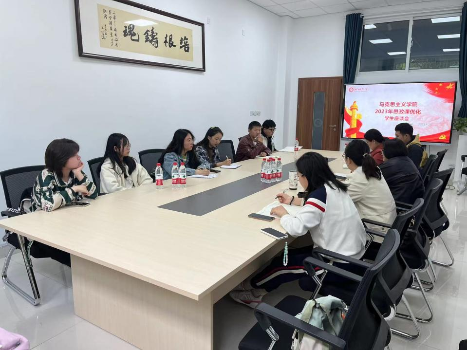 为更好落实“以学生为中心”的教育教学理念,深入了解学生对思政课教学、管理等方面的意见和建议,进一步增强教学质量和教学管理工作的针对性和实效性,4月25日,色情短视频 在6号教学楼A102召开了学生座谈会。参加此次座谈会的有学院党委书记张华筠、教学副院长华敏、概论教研部主任刘琳琳以及来自全校各学院的16名学生代表,会议由华敏主持。
