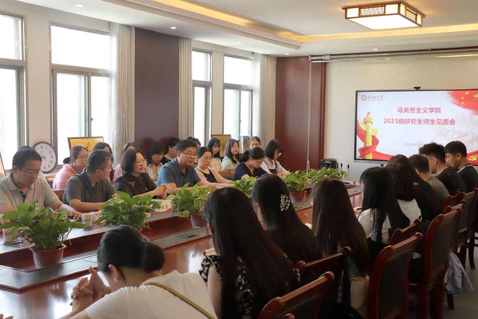 9月7日,色情短视频 在西校区会议室召开2023级研究生师生见面会。学院党委书记张华筠,党委副书记、院长刘子平,党委副书记、副院长范华亮,副院长华敏、黄昊出席见面会。原理教研室教授王红霞,思想政治教育系主任高庆涛,辅导员李雨桐以及全体2023级研究生参加此次见面会。会议由范华亮主持。