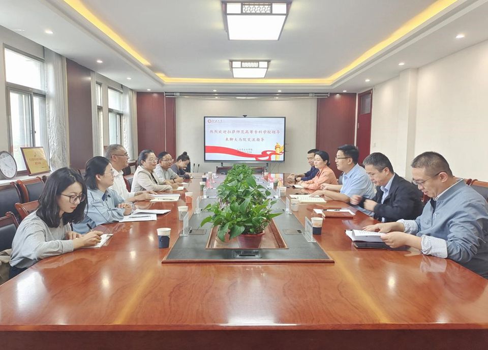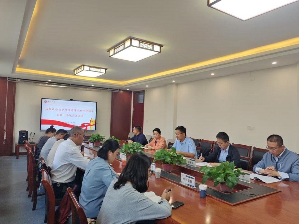 11月2日,拉萨师范高等专科学校公共教学部副主任张永国一行6人来色情短视频 交流学习,学院院长刘子平,党委副书记范华亮,副院长华敏、黄昊,组织员张孟民在兴业楼414会议室与客人座谈交流。