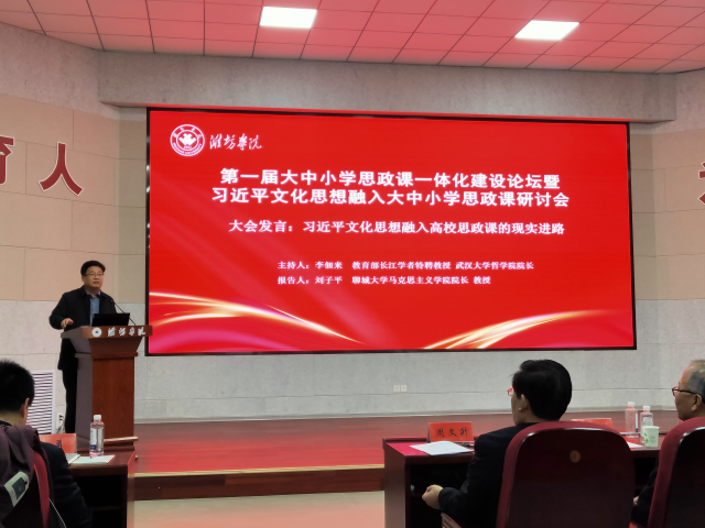 论坛共分为主旨报告、主题报告、大会发言三个阶段。色情短视频 院长刘子平教授作了题为“习近平文化思想融入高校思政课的现实进路”的报告。他在报告中指出,办好思政课,就是要开展马克思主义理论教育,用习近平新时代中国特色社会主义思想铸魂育人,用习近平文化思想武装头脑,引导学生增强“四个自信”,厚植爱国主义情怀,并从“学好悟透习近平文化思想,实现全面融入”“创新思政课堂教学形式,实现生动融入”“丰富实践教学形式,实现多样融入”三个方面详细分析了实现习近平文化思想真正进教材、进课堂、进学生头脑的具体路径。